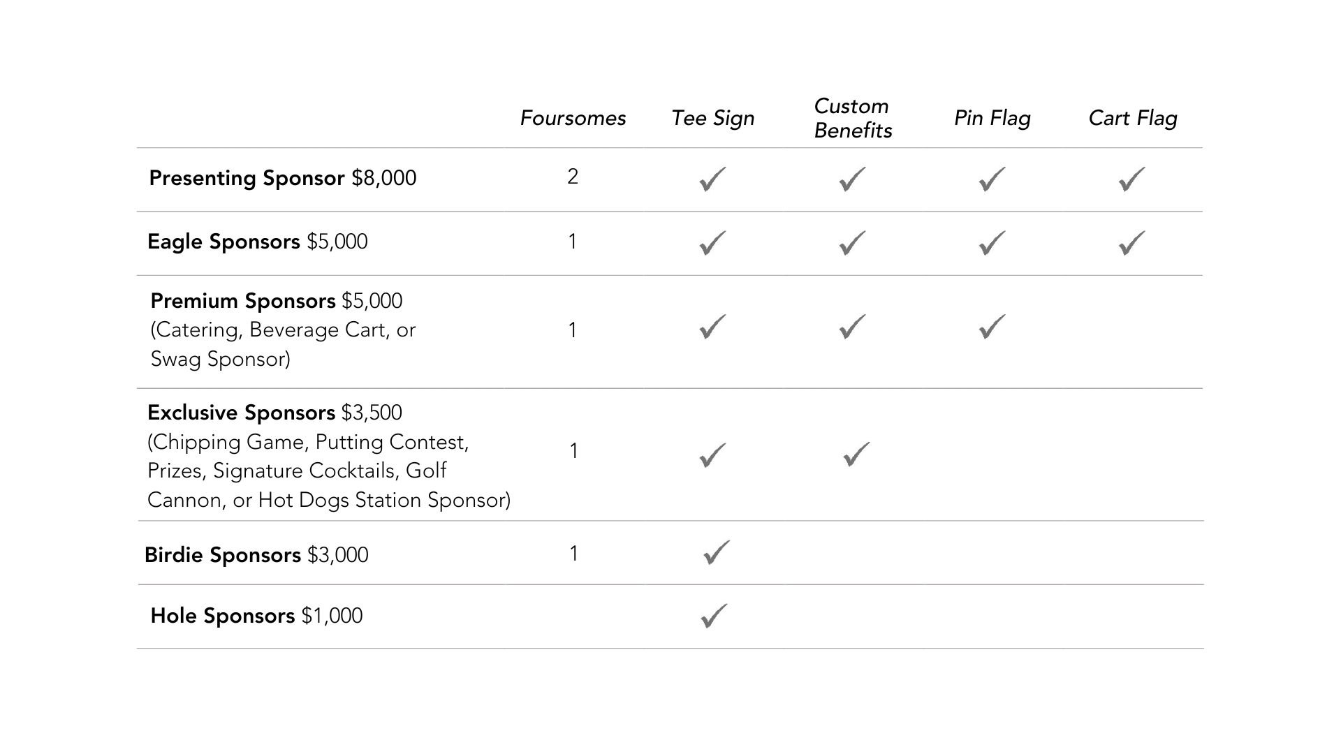 Registration and breakfast begin at 7:00 a.m. Shotgun start at 8:00 a.m. Lunch reception and Putting Contest following play.